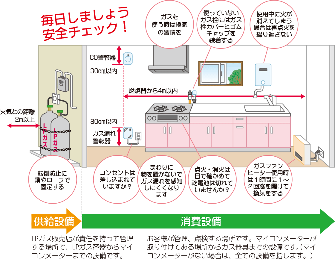 ・LPガス販売店の点検を受けて、安全確認してから再び使用してください。