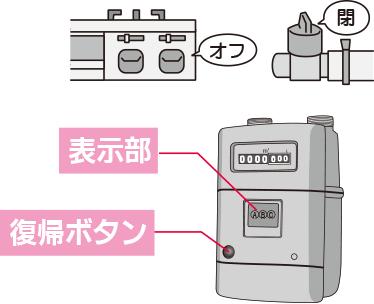 止まったガスを再び使うには、下記の手順で復帰操作を行ってください。